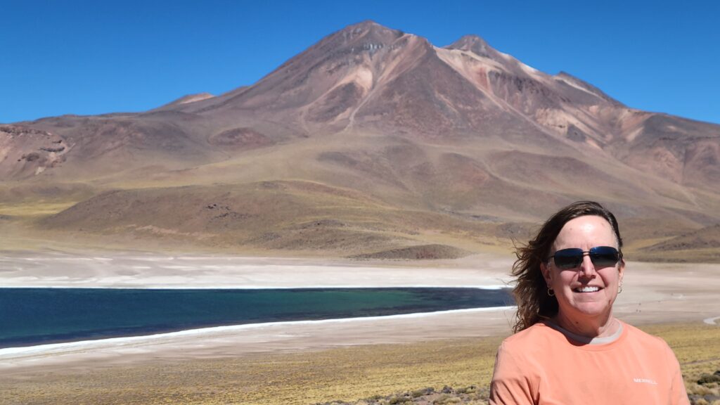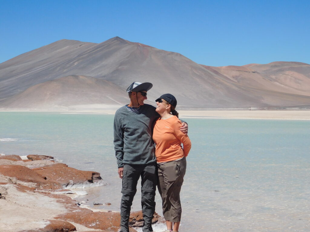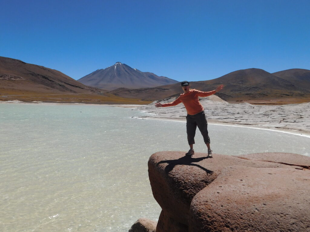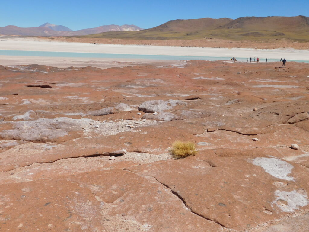 Following our visit to the salt flats, we went to a place our guide called “red rocks.” It was also a beautiful turquoise lagoon surrounded by mountains.