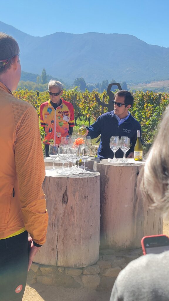 Since we had two nights at the TerraVina, today was a loop ride through the Colchagua valley, which is known for its fertile soil. We visited a vineyard for a tour and wine tasting at mile 30 and then rode three miles to Montes vineyard where we had lunch before riding 10 miles back to our hotel in Santa Cruz.