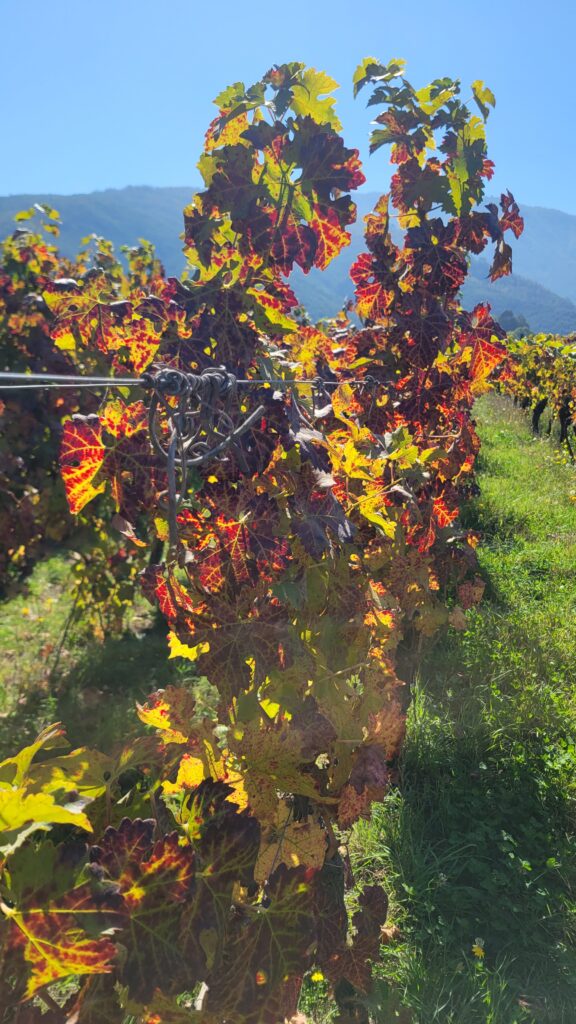 It is Autumn here, so the leaves are turning – even on the grape vines.