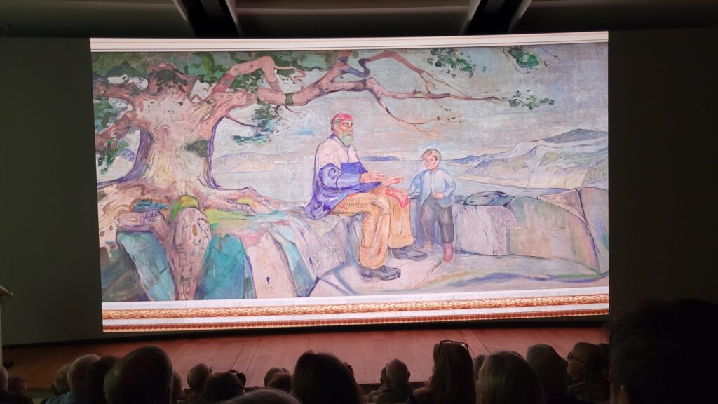 There are replicas of a couple of Edward Munch’s work in the auditorium where we meet for briefings and documentaries (so far).