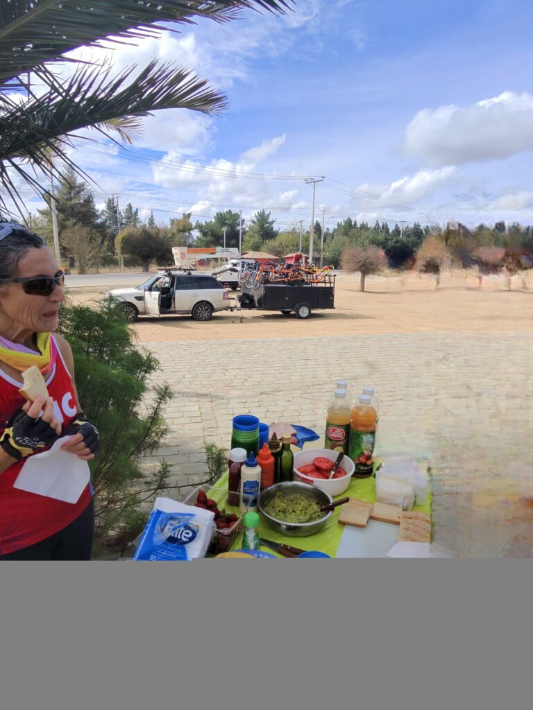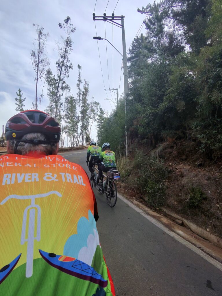 Yes, it looks like there are a lot of bikes on the trailers for a lunch time stop. Well, we had a 9 mile, 1,500 foot climb up a dirt road that started just after lunch and no one wanted to ride. So, there was a shuttle to the start of the pavement – no one regretted not doing the ride up that hill. There were plenty of other options for very steep climbs during the afternoon. One was a 17 percent grade for a short stretch.