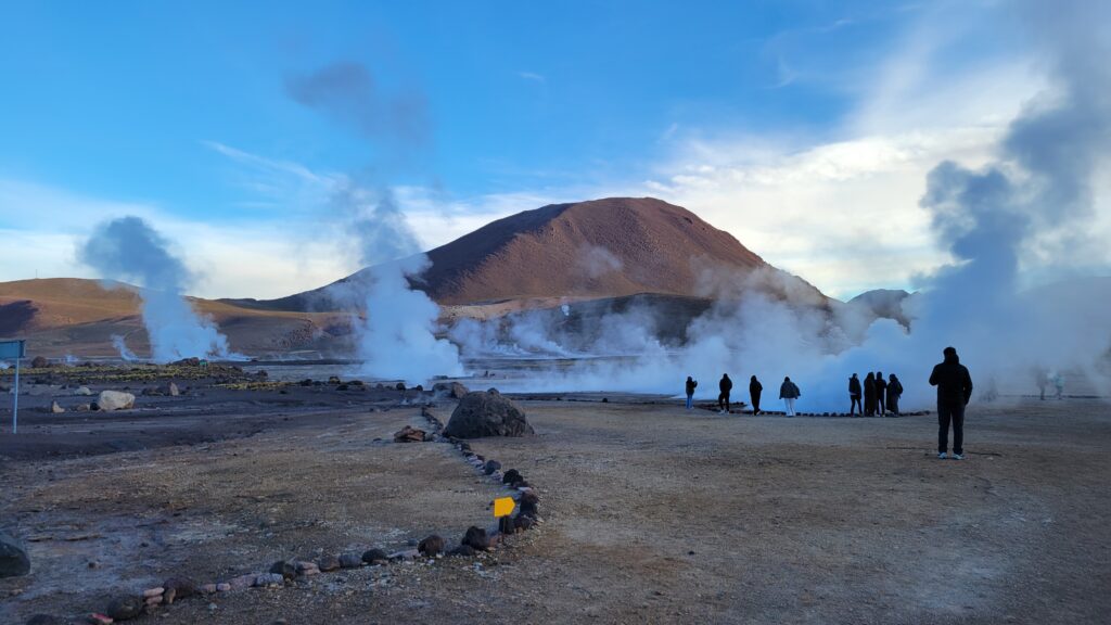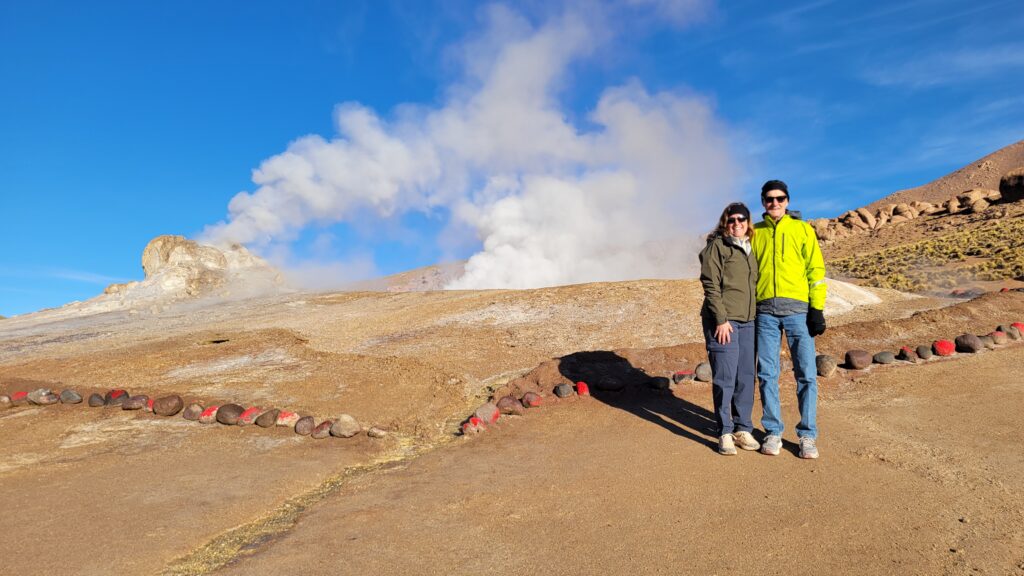 Our day started at 5:30 am with a 1.5 hour drive to El Tatio (the grandfather) to view the geysers at sunrise when the steam is most impressive.