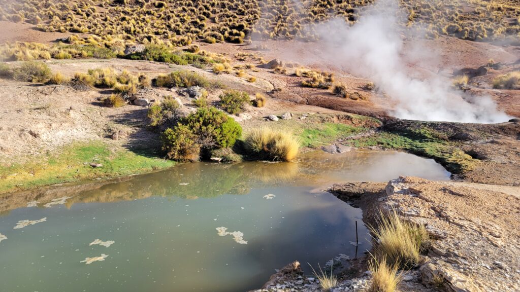 The geysers were interesting, I guess this is the third largest geothermal field in the world. I think Old Faithful is more impressive…but it was good to see in the high desert. El Tatio is at about 4,400 meters. It was also -4 degrees C when we passed through a village on the way up, but once the sun was up, it warmed up pretty quickly.