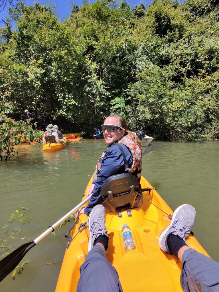 The home sits at the top of a bluff overlooking the Parana River, which forms the border between Argentina and Paraguay. Following a safety talk and demonstration of how to get in and out of the kayak, we hiked down to the river and kayaked for about 1.8 miles. We first kayaked along the Parana River (likely the closest I will ever get to Paraguay) and then turned to go down the Uruguay Stream to a pull out spot. The river was pretty high because of recent rains so the pull-out spot was underwater, making it a bit more challenging to exit the kayak, but the guides were there to assist and make sure no-one was dumped.