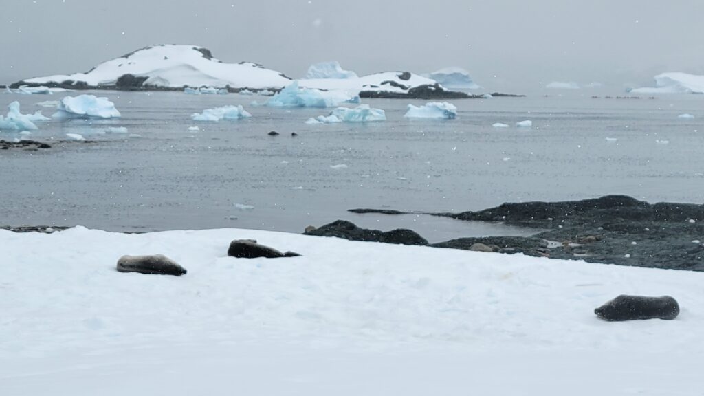 The snow was very deep and so the expedition team only packed out a fairly small loop for us to walk. At the tip of the peninsula, there were a few weddell seals lounging on the snow.