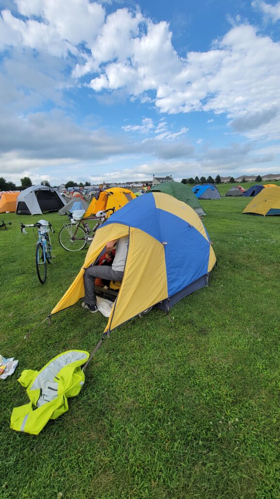 We started our transport to the start in Orange City, IA with a significant thunderstorm in Guttenberg, IA as we loaded our bikes onto a semi and caught a bus for the five hour ride to Orange City.