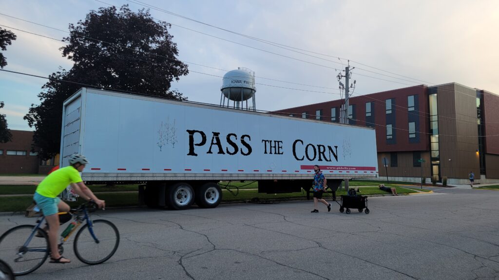 There was more bicycle art in Parkersburg and New Hartford, as well as fresh sweet corn just picked yesterday. That was the first corn for sale along the route.