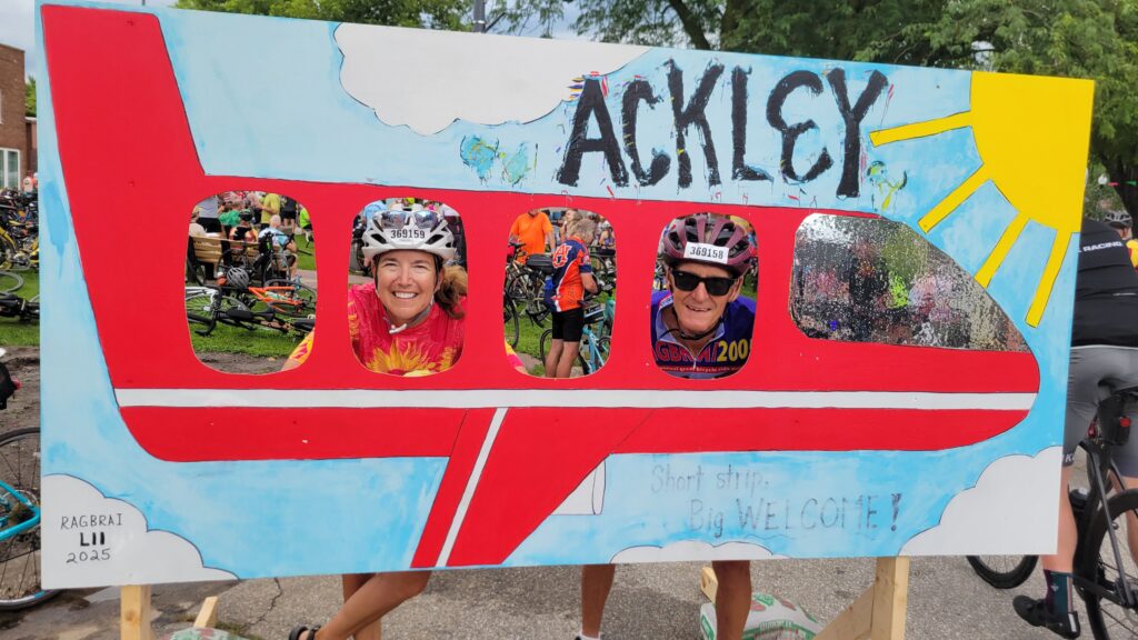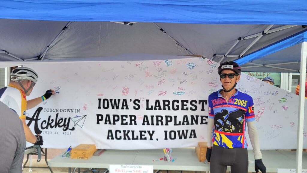The first town was Ackley and in my book they win the prize for the town with the best alignment with the RAGBRAI theme. This year’s theme is Take Flight and RAGBRAI is raising money for Honor Flight.