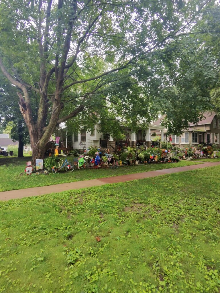 Sounds like a fun town that really tried to go all out! Love the flower mural and bicycle incorporated yard decor!